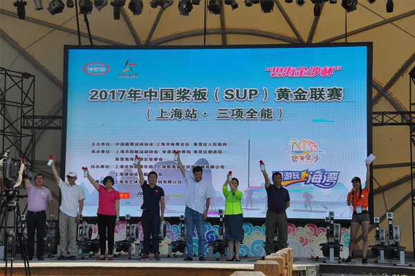 “2017年‘碧海金沙’杯中国桨板(SUP)黄金联赛(上海站)三项全能赛”由中国极限运动协会、上海市体育总会、奉贤区人民政府主办,上海市船艇运动协会、奉贤区体育局、奉贤区旅游局、奉贤海湾旅游区管委会承办,上海碧海金沙投资发展有限公司、上海市划船俱乐部、上海橙动皮划艇俱乐部协办,上海浩艺体育赛事策划有限公司运营。