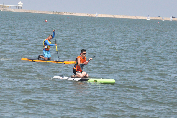 本次SUP三项全能赛为划船器500米+沙滩跑300米+SUP 3公里,分设了男子个人统一组、女子个人统一组和个人公开组(不分男女)三个组别,除了专业的SUP赛事以外,同时还加入了双人海洋舟青年交友赛(划船器2×1分钟+双人海洋舟200米)和划船器“新华少年”家庭亲子赛。值得一提的是,首次引入了青年男女交友元素,打造甜蜜的环节,把交友元素和体育运动相结合,让参赛者在感受海洋体育运动的同时,也能够结识兴趣相同的小伙伴。