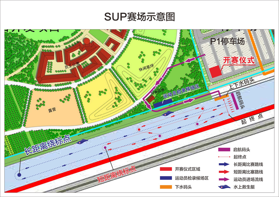 (二)SUP桨板全程以站立式划行、落水后上板可以继续比赛但必须以站立式划水,绕标赛必须完成所有标点的绕标动作,绕标不完全无竞赛成绩,以站立式通过终点时间少者名次列前;