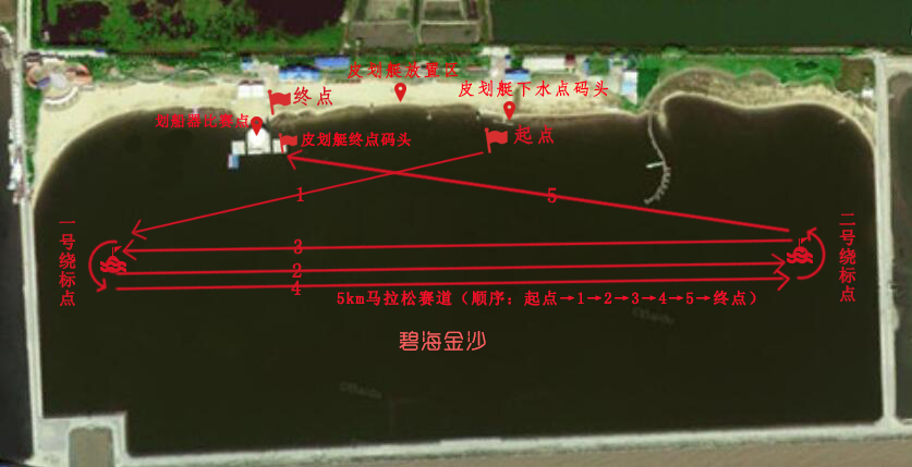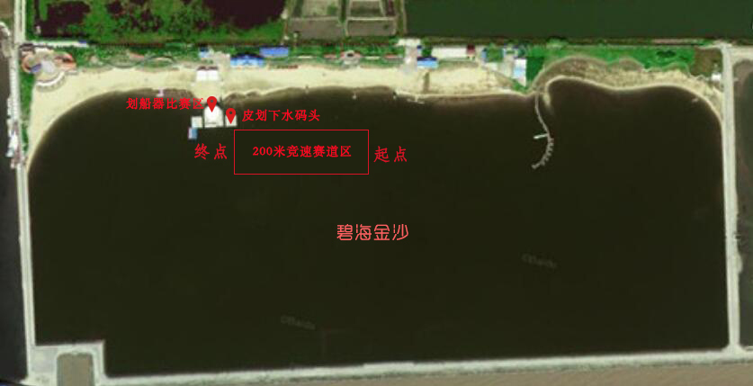 - 第二阶段:划船器比赛点至皮划艇下水点(总长约300米。自行将本队的艇于沙滩上的皮划艇停放点抬至下水点,期间完成救生衣、号码衣等装备穿戴,请提前将这些装备放在本队的艇上);