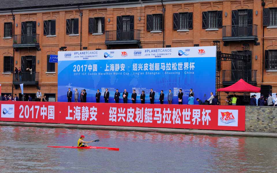 2017中国·上海静安·绍兴皮划艇马拉松世界杯在上海静安区苏河湾区域开赛。作为国家体育总局国际赛事分类中的A类赛事,比赛根据国际皮划艇联合会标准,赛道划定为外白渡桥至西藏路桥河段;分青年组和成年组,进行男子、女子皮艇和划艇3.6公里项目的角逐。10月25日和26日为世界杯短距离小组赛和决赛,10月27日为经典系列赛。来自德国、葡萄牙、丹麦、荷兰等十余个国家和地区的200余名运动员参加了本次大赛。