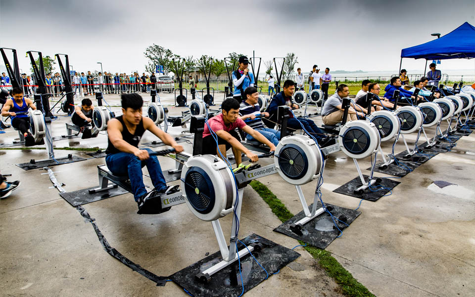 本次赛事既有竞技性,观赏性很强的竞赛项目,又有趣味性、娱乐性、互动性较强的参与项目,整场比赛高潮迭起、互相感染、丰富多彩,使广大的市民群众在观赏精彩、刺激的水上体育比赛的同时,又能身临其境、亲自参与体验水上运动的魅力和乐趣。相比前几日的初夏高温,当日的小雨送来阵阵凉意。碧波荡漾的滴水湖面微风裹挟着湿意,来自江浙沪三地的皮划艇\SUP桨板运动达人、爱好者和“新华小记者”家庭、“交大红娘”青春情侣共300名参赛人员同场竞技,挑战体能极限的皮划艇\SUP桨板、划船器、滑雪机三项全能以及日益受市民群众欢迎的陆上划船器等比赛。来自南汇新城镇的近百名居民群众坐上测功仪(划船器的别名),固定好脚蹬,握紧划浆,模拟水上划船运动拉浆发力,体验水上运动的激情和挑战,接力赛将运动场上的气氛推向赛事高潮。
