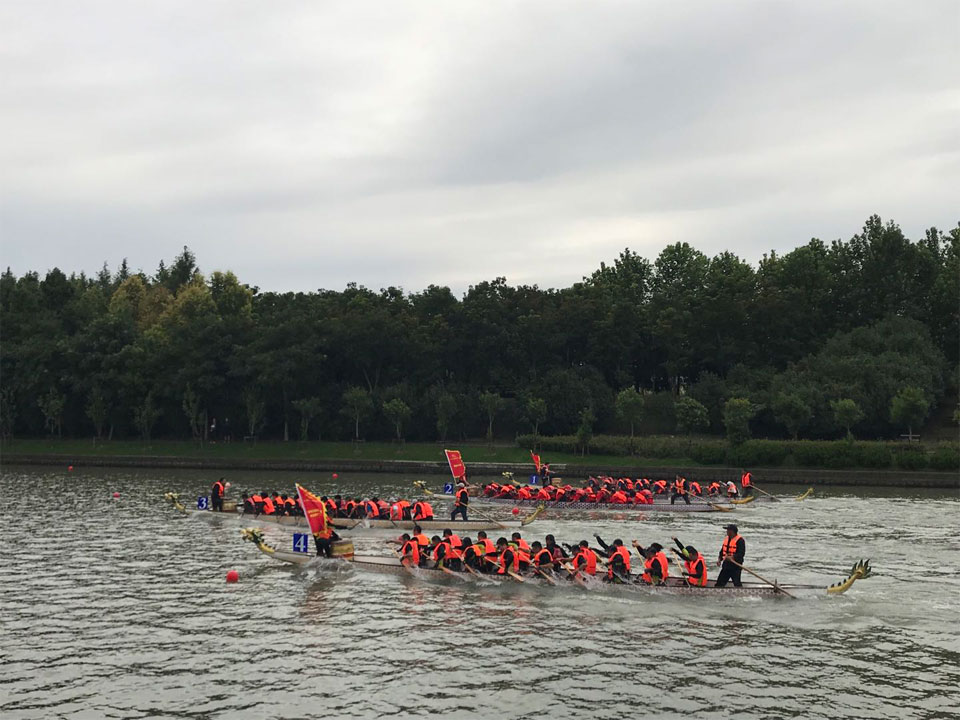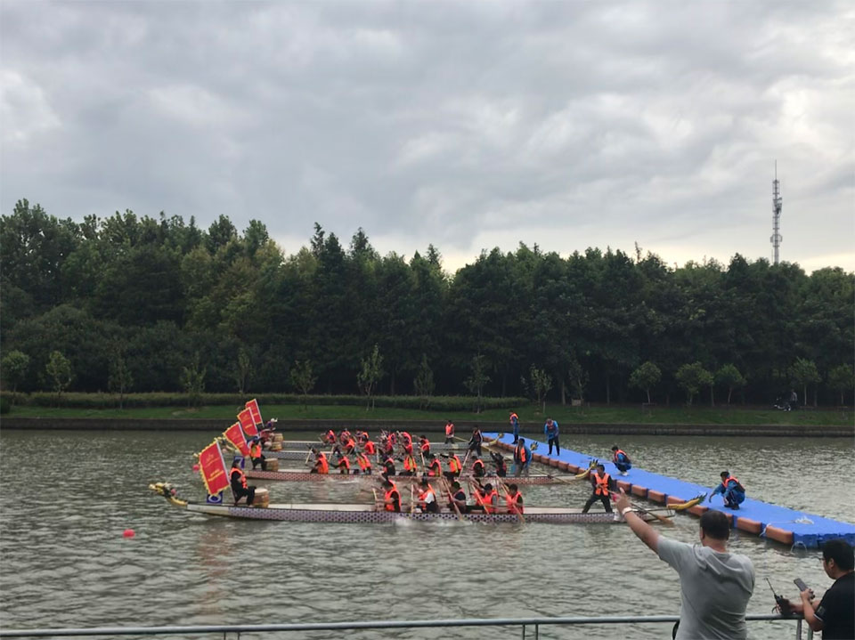 比赛当日,虽受台风“塔巴”影响,但随着裁判员的一声令下,各队选手奋力划桨,劈波斩浪,河面上水花飞溅,鼓点振奋人心,龙舟犹如离弦之箭,急速前进,在300米的水面上划出一道十分热闹、壮观的风景。