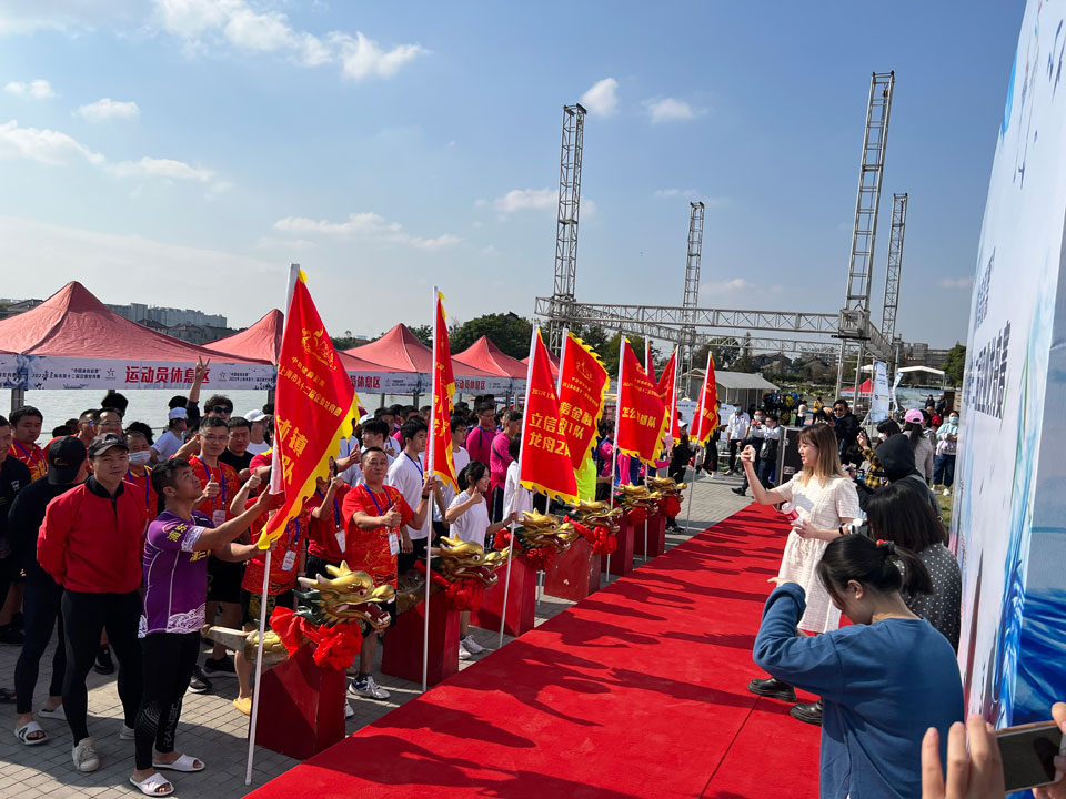 11月5日,2022年“兴业银行杯”上海城市业余联赛“中国体育彩票”第十二届上海企业龙舟赛在风光秀丽的闵行区中央水岸周浦塘水域举行,该项赛事是今年上海群众性龙舟比赛的首秀。