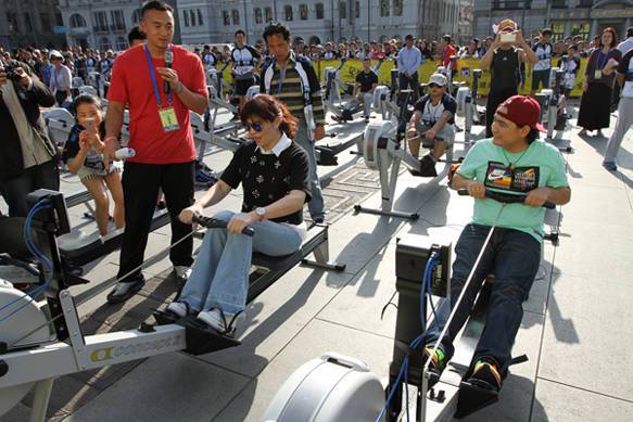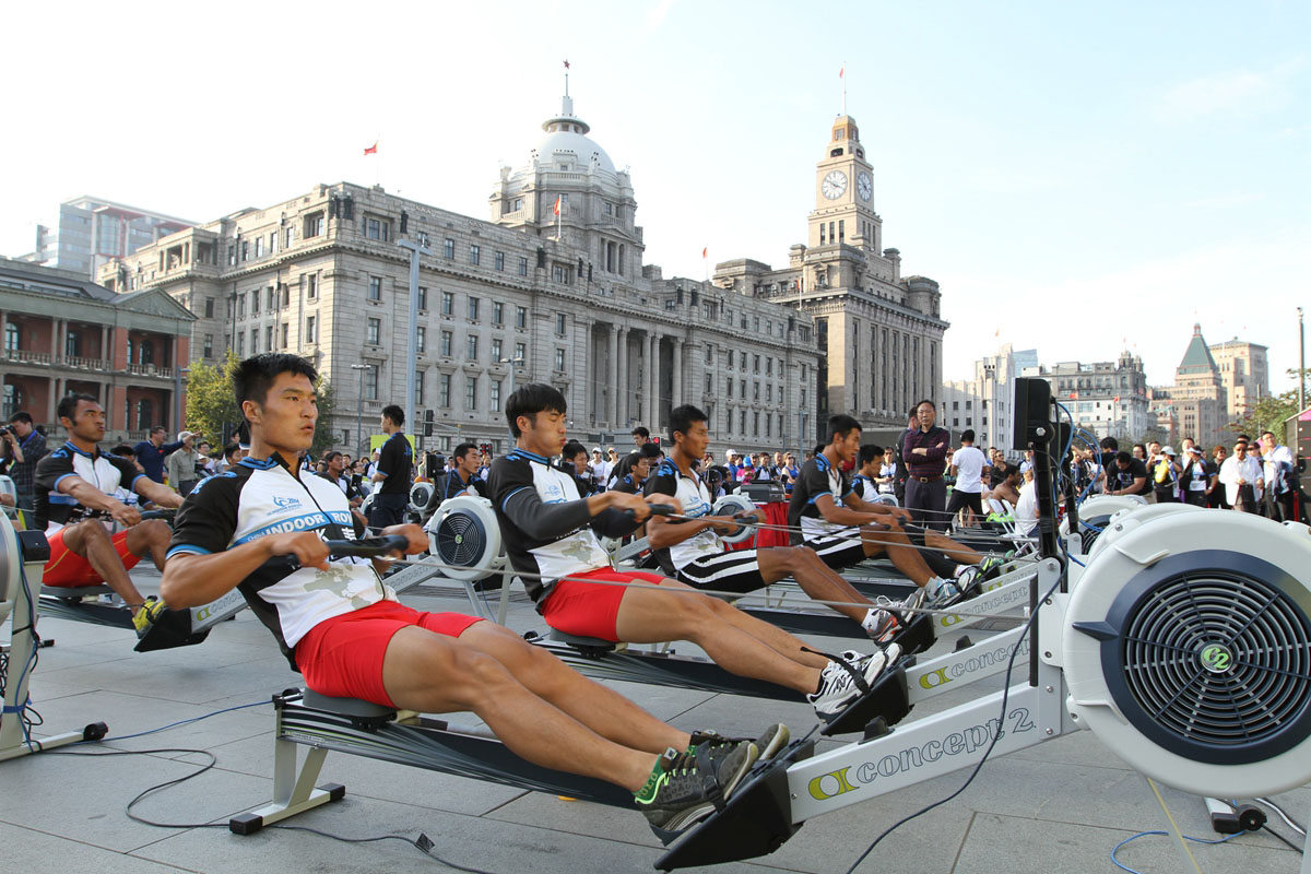 金秋十月,沪上上演了最盛大的陆上划船器赛事。2014“一兆韦德杯”中国划船器公开赛暨上海市民体育大联赛陆上划船器总决赛于10月19日在上海著名地标外滩金融广场火热开赛。