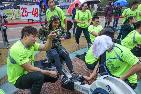 立冬虽至,沪上却上演了一场火热运动盛宴!作为上海市民体育大联赛的活动之一,2015“一兆韦德杯”中国划船器公开赛暨上海市民体育大联赛划船器总决赛,11月21日下午在南京路步行街“世纪广场”活力开赛。今天尽管是阴雨天气,但参赛者们仍然踊跃参与到达现场,来自7个国家和地区,以及30个省市的参赛选手齐聚繁华的南京路步行街,展开了一场集娱乐、时尚、趣味、竞技的体 育赛事。