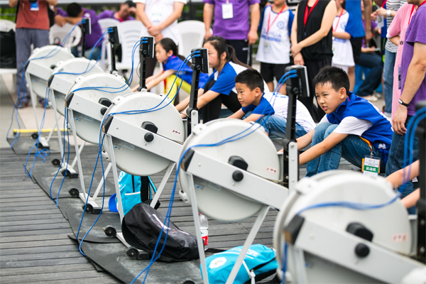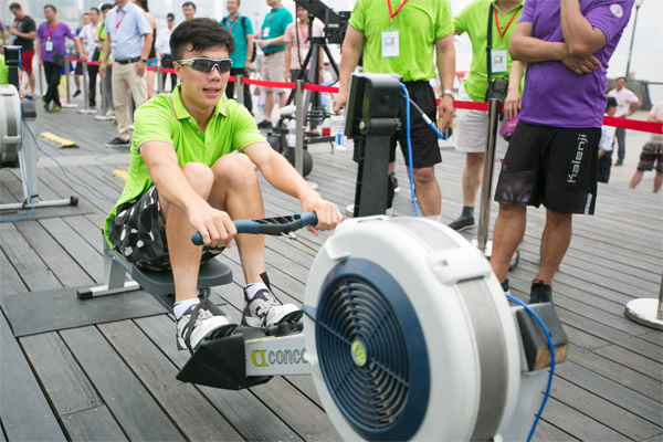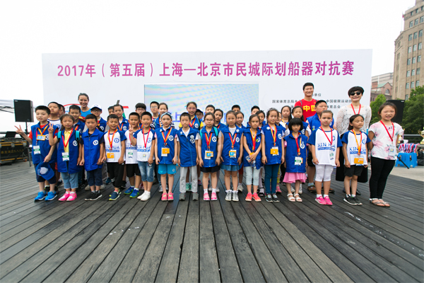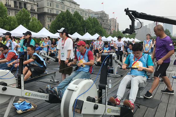 为庆祝7月1日党的生日和上海黄浦江滨江贯通,2017年(第五届)上海—北京市民城际划船器对抗赛在外滩滨江黄浦公园段拉开帷幕。300多名来自上海、北京的市民男女优秀划船器运动爱好者、大学生和“新华小记者”家庭、青年男女“奋力拼搏、力争上游”,为广大市民奉献了一场精彩纷呈的群众体育赛事。