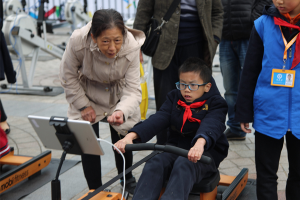 家庭亲子接力比赛要求每个参赛家庭在1分半的比赛时间内,由1名儿童和1名家长通过接力的形式共同完成比赛,按划行距离排名。这项参与项目,吸引了一群特殊的选手们前来参赛,他们就是新华小记者和他们的父母、家人。小记者们都十分开心并且享受着和父母、家人一起参加的比赛,通过比赛孩子们收获的不仅仅是乐趣,更是成长。