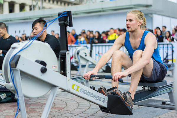 风靡全球的划船器是一种模拟划船运动的的室内健身器材,运动过程中,锻炼人曲腿坐在滑凳上,手足同时施力,腿部伸直后腰部后仰,双臂向两侧后划,模拟划船。练习时,每一个屈伸的划臂动作,都能使全身约90%的伸肌得到锻炼,对腿部、腰部、上肢、胸部、背部的肌肉增强有较好的作用,对那些平时不运动的伸肌也受益无穷。本届赛事在设立男、女个人赛和团体混合接力赛等竞赛项目的同时,还设立了家庭亲子和青春“情侣”交友接力两个参与项目。