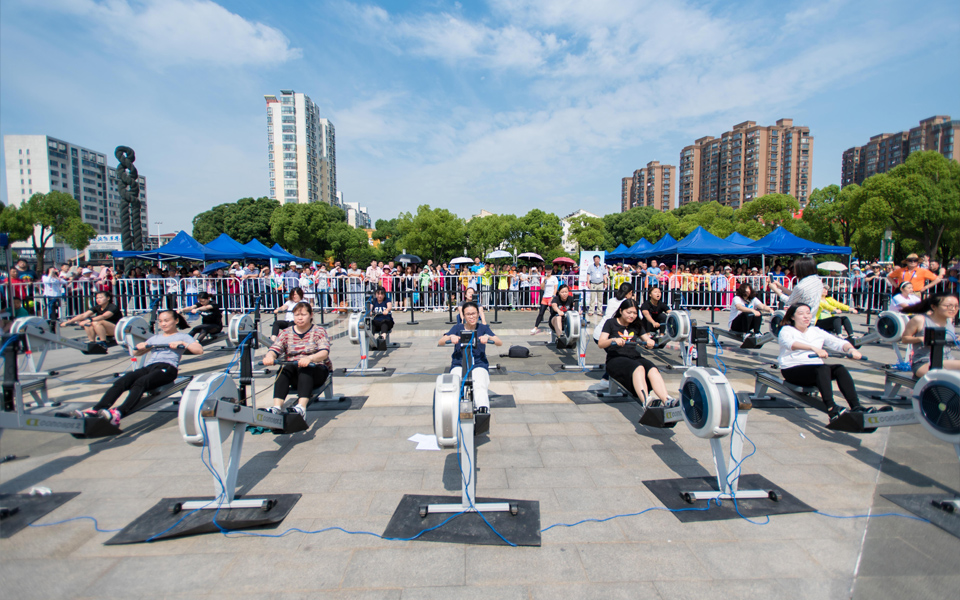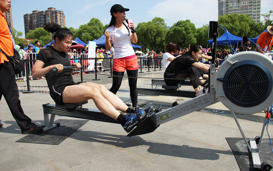 今年除了将比赛搬到了室外,同时增加了划船器两项团队(双人)体能极限挑战和家庭亲子接力赛,400多名选手、800多人次同场竞技,动感的音乐,精彩的比赛,吸引了众多观众驻足观赛。