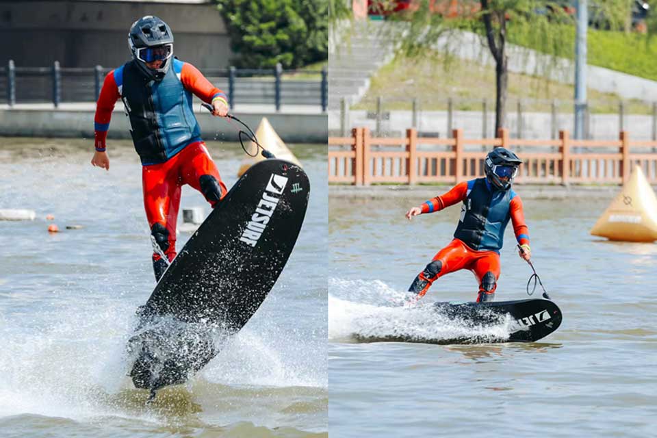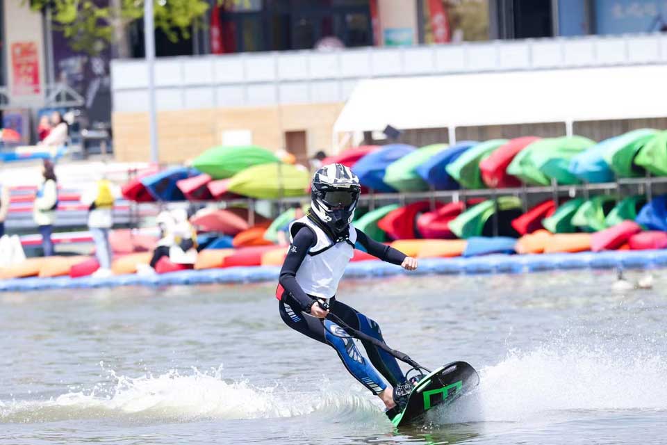 当天,同时举办了上海城市业余联赛上海市动力冲浪板系列赛,动力冲浪板是一项集观赏性、竞技性、娱乐性于一体的新兴体育项目,近年来备受广大青少年喜爱。此次比赛共有来自上海各区和浙江省金华市的近20名青少年参加。