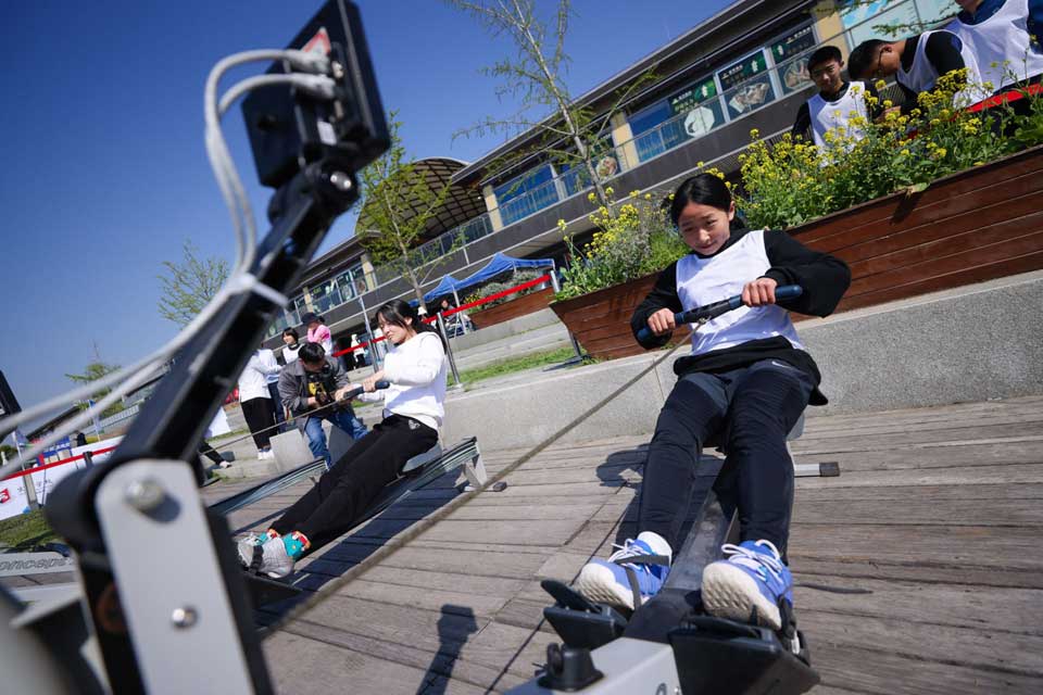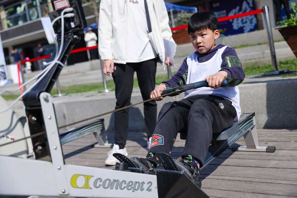 迎着融融春风,青少年划船器运动员等级评定测试赛作为2023年“兴业银行杯”上海城市业余联赛上海市划船器系列赛的首场比赛于4月8日在浦江镇浦锦街道水岸广场成功举办。
