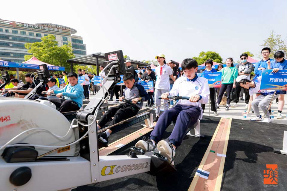 2023年“兴业银行杯”上海城市业余联赛上海市划船器系列赛古美校园赛于4月16日在古美公园拉开帷幕,近10所学校组队参赛。