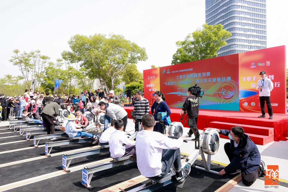 2023年“兴业银行杯”上海城市业余联赛上海市划船器系列赛“与你同行 共享阳光”青少年天使挑战赛于4月16日在古美公园拉开帷幕。现场,由区残联、古美路街道“阳光之家”组织的30名“折翼天使”和“星星的孩子”在划船器运动中体验运动的乐趣。