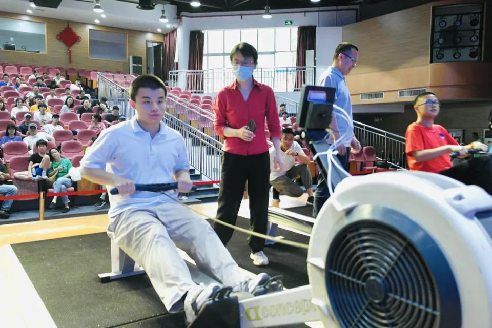 据悉,陆上模拟划船是一项模拟赛艇运动的陆上健身活动,集趣味和竞技为一体。它每划动一次,腰部、腿部、上肢、胸部等会完成一次完整的收缩与伸展,可达到全身肌肉有氧训练的效果,适合各个年龄层次的人群参加。